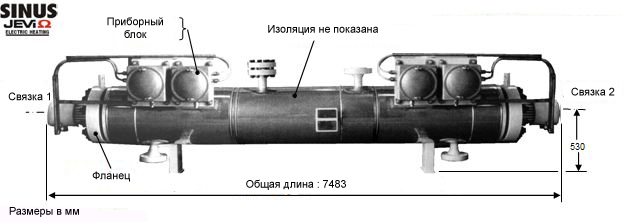 Взрывозащищённый электрический нагреватель топливного газа разделен на 4 сосуда по 630 кВт каждый, которые смонтированы последовательно. В свою очередь в каждый сосуд установлены по две связки ТЭН по 315 кВт. Общая мощность управляется 4 тиристорами.