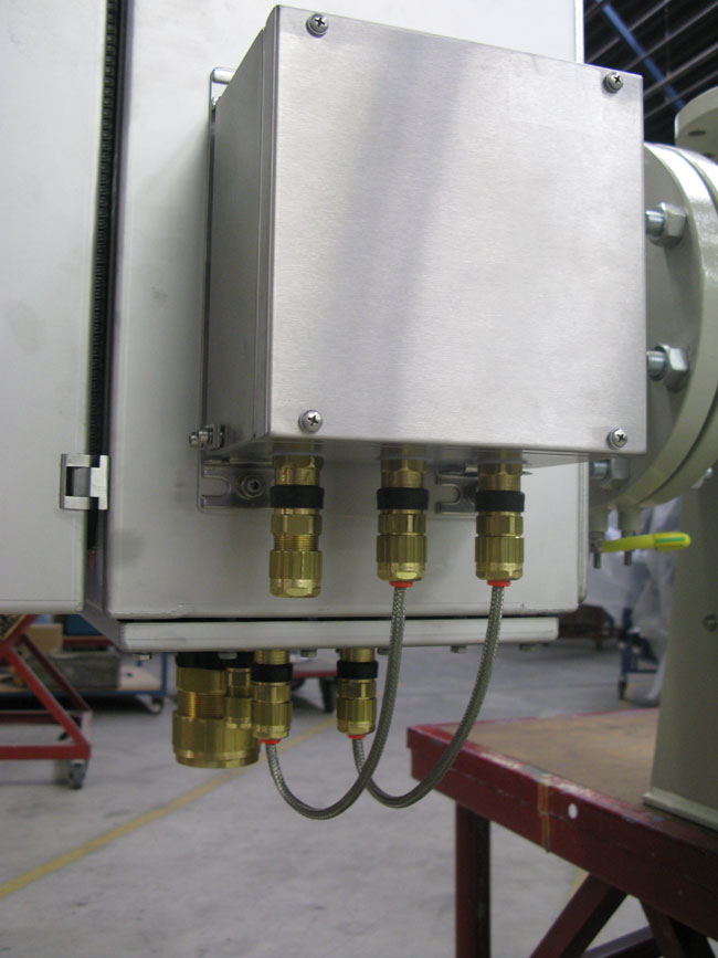 Взрывозащищённый нагреватель сжатого воздуха 70 кВт для установки во взрывоопасных зонах 1 и 2 с тиристорной панелью управления для установки в безопасной зоне.