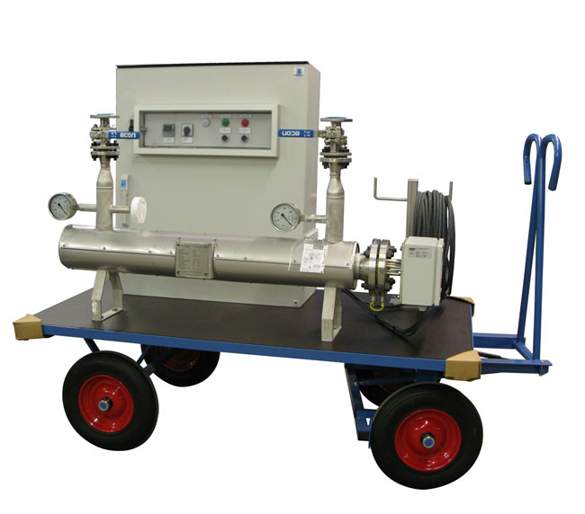 Взрывозащищённый нагреватель топливного газа для установки во взрывоопасных средах 1 и 2 с тиристорной панелью управления для установки в безопасной зоне.