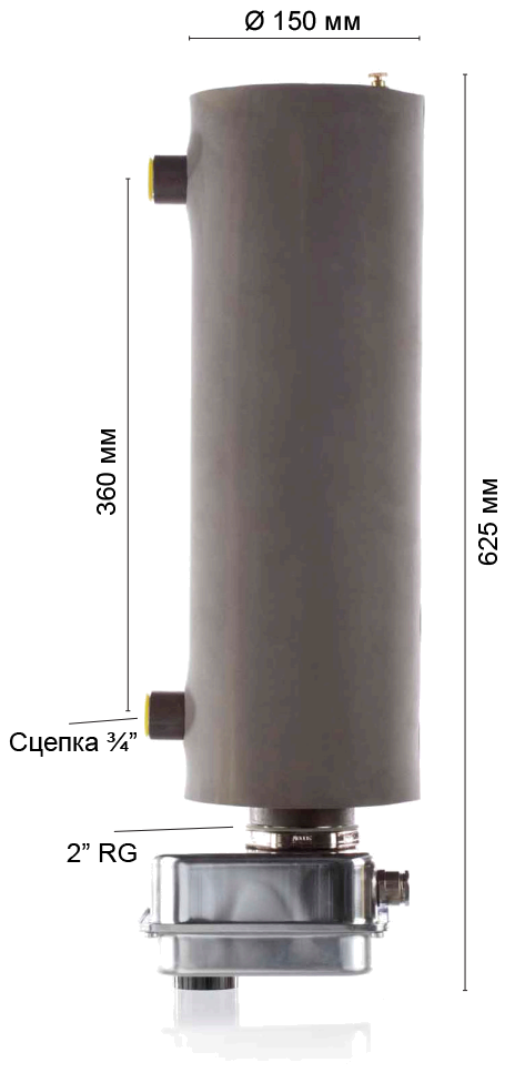 В качестве источника тепла служит стандартный нагревательный элемент Jevi (2'' RG) с распределительной коробкой типа «H».
