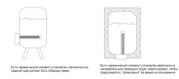 Если нагреватель устанавливается вертикально, то канавки должны быть расположены таким образом, чтобы нагревательный элемент не разрушался при повышении температуры.